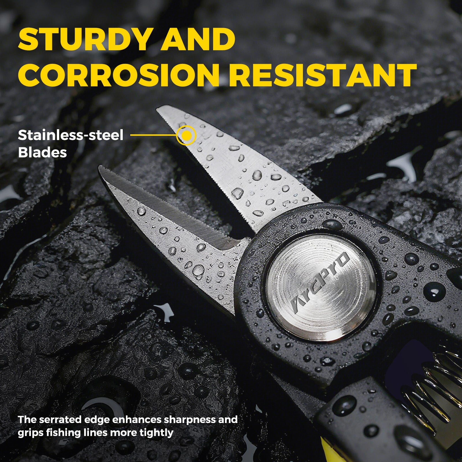 【Precision Cutting with Titanium-Coated Blades】: Arcpro fishing line scissors feature ultra-sharp titanium-coated blades—three times harder than standard steel—making them the trusted choice for anglers seeking the ultimate braided line cutter. They cleanly sever braided lines, fluorocarbon lines, and monofilament lines without fraying, while the rust-resistant coating ensures lasting durability in both freshwater lakes and saltwater oceans.【镀钛刀片精密切割】:Arcpro钓鱼线剪刀采用超锋利的镀钛刀片,比标准钢材坚硬三倍,使其成为寻求终极编织线切割的垂钓者值得信赖的选择。它们干净地切断编织线,氟碳线和单丝线而不会磨损,而防锈涂层确保在淡水湖和咸水海洋中持久耐用。