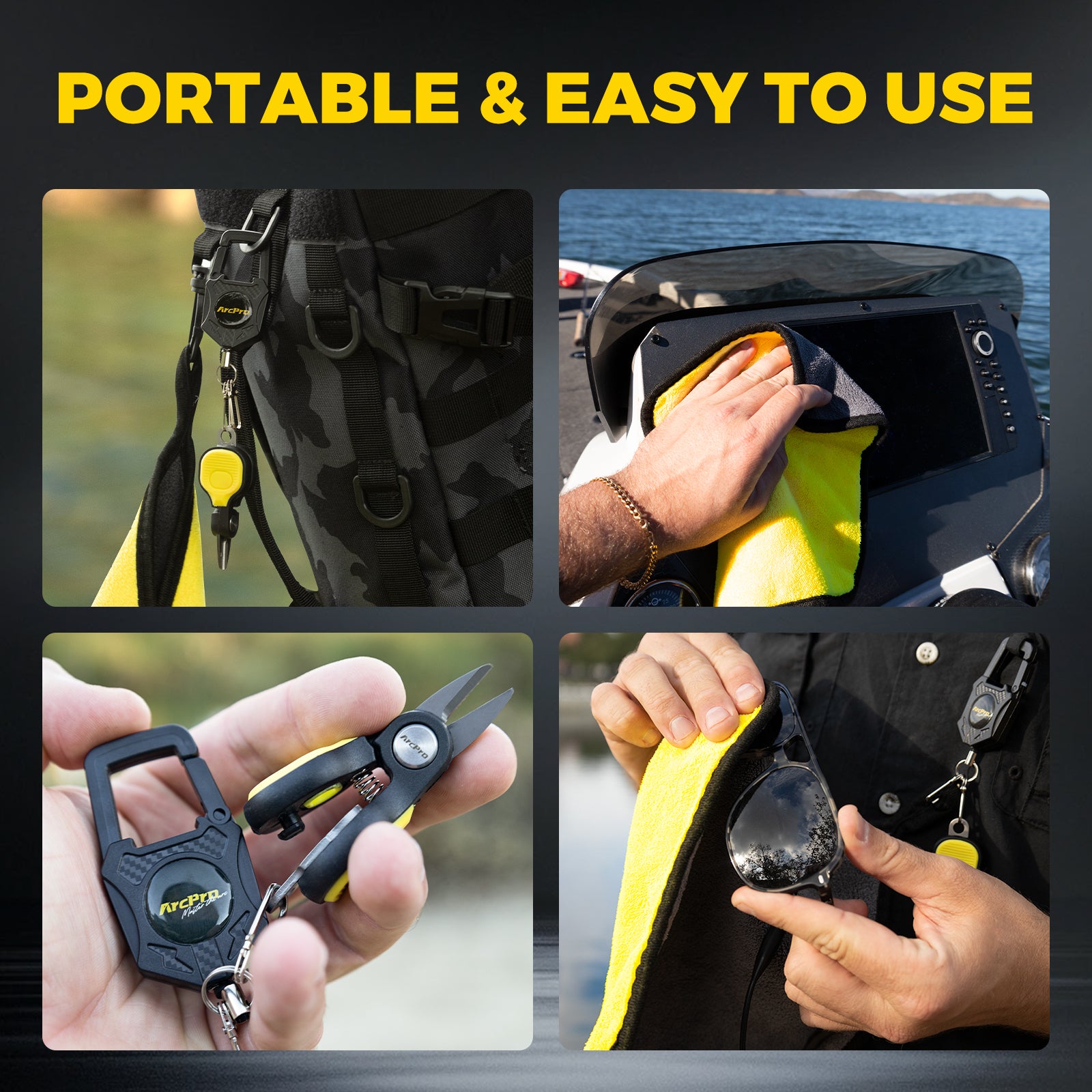 【Ultra Absorbent】: The upgraded microfiber and fluff yarn provide the bait towel a splendid cleaning power and water absorption, which help you wipe away dirt, blood, and oil effortlessly, without leaving a smell after cleaning【超强吸水性】:升级版的超细纤维和绒毛纱,为鱼饵毛巾提供超强的清洁力和吸水性,让你毫不费力地擦拭污垢、血迹、油污,清洗后不留异味
